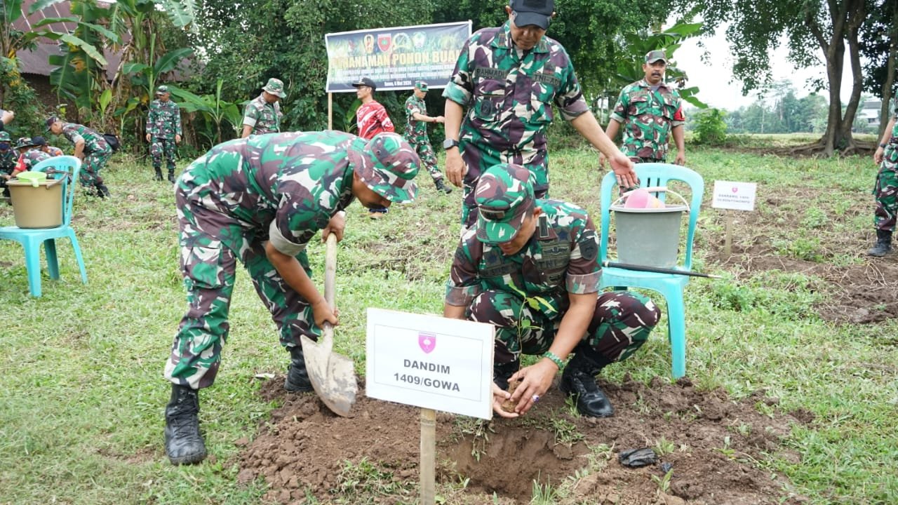 Komandan Kodim 1409/Gowa Letkol Inf Muhamad Isnaeni Natsir, S.I.P, menyampaikan Hari ini, melalui Vidcon, juga dilaksanakan kegiatan Aksi penanaman pohon di satuan teritorial jajaran TNI AD tersebar di seluruh wilayah Indonesia, yang dipimpin langsung oleh Bapak KASAD Jenderal TNI Maruli Simanjuntak, M.Sc., yang dipusatkan di Kendari Sulawesi Tenggara.