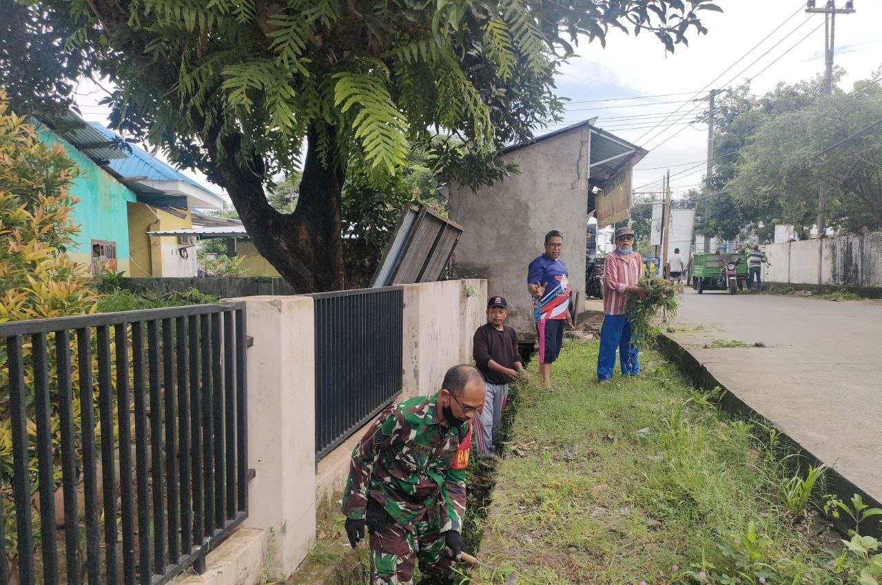 “Pembersihan dilakukan guna mengantisipasi luapan air yang dikarenakan tersumbatnya saluran air, langkah ini juga mengantisipasi agar air tidak banjir ke jalan yang akan menimbulkan kerusakan pada jalan.”ungkap Babinsa Serma M. Said.
