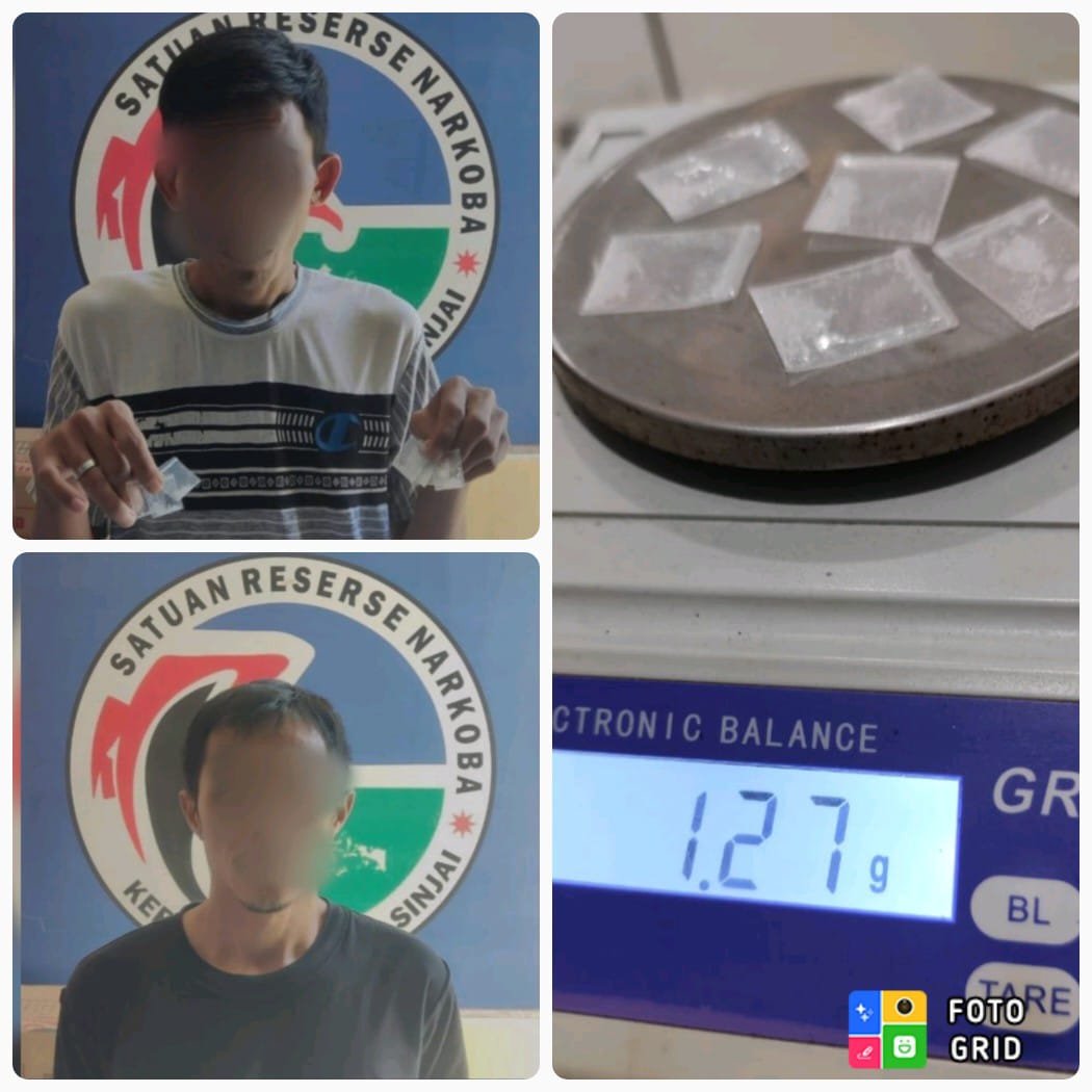Selain mengamankan kedua pelaku juga mengamankan barang buktinya berupa 7 (tujuh) sachet plastic klip yang diduga berisi narkotika jenis sabu dengan berat bruto 1,27 (satu koma dua puluh tujuh) gram, 1 (satu) buah pembungkus bekas rokok merk Rocker, 1 (satu) unit handphone merk Oppo A31 warna putih hijau dan 1 (satu) unit handphone merk Vivo Y16 warna gold.