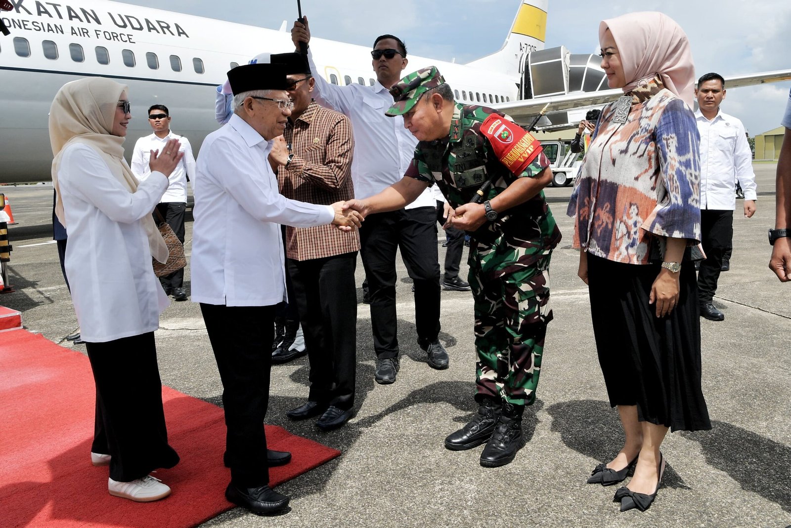 Maros – Pangdam XIV/Hasanuddin Mayjen TNI Bobby Rinal Makmun, S.I.P., menyambut dan melaksanakan pengamanan kedatangan Wakil Presiden Republik Indonesia, Prof. Dr. (H.C.) K.H. Ma’ruf Amin, beserta Ibu Wury Ma’ruf Amin yang melaksanakan transit di Base Ops Lanud Sultan Hasanuddin, Kab. Maros. Selanjutnya melaksanakan pengantaran Wakil Presiden Republik Indonesia menuju Bandara Soekarno Hatta. Seluruh rangkaian kegiatan berjalan dengan lancar dan aman. Jumat, (7/06/2024).