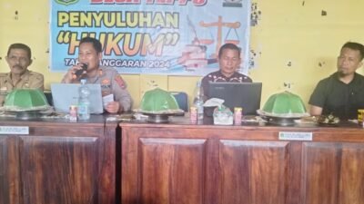 SIDRAP, – Wakili Kapolres Sidrap AKBP Erwin Syah. S.I.K.,MH, Kasat Binmas AKP Zakariah. SH telah berpartisipasi sebagai pemateri dalam penyuluhan hukum yang diselenggarakan oleh Pemerintah Kabupaten Sidrap. Acara ini diadakan di Aula Kantor Desa Teppo., Kec. Tellu Limpie, Kab. Sidrap dan dihadiri oleh berbagai elemen masyarakat, termasuk perwakilan dari kalangan pemuda, tokoh masyarakat dan tokoh agama. Selasa (11/06/24) Dalam penyuluhannya, AKP Zakariah. SH menyampaikan berbagai materi mengenai pentingnya kesadaran hukum dalam kehidupan bermasyarakat. Topik yang dibahas meliputi aturan-aturan hukum dasar, pentingnya memahami hak dan kewajiban sebagai warga negara, serta peran aktif masyarakat dalam menjaga keamanan dan ketertiban di lingkungan masing-masing.AKP Zakariah menekankan bahwa pengetahuan hukum yang baik dapat membantu masyarakat dalam menghindari tindakan-tindakan yang melanggar hukum serta meningkatkan kerjasama antara masyarakat dan aparat kepolisian. “Kegiatan seperti ini sangat penting untuk memberikan pemahaman yang mendalam tentang hukum, sehingga masyarakat bisa lebih bijak dalam bertindak dan berpartisipasi aktif dalam menciptakan lingkungan yang aman dan tertib,” ujar AKP Zakariah.Selain itu, acara ini juga diramaikan dengan sesi tanya jawab, dimana peserta diberi kesempatan untuk mengajukan berbagai pertanyaan terkait hukum yang dijawab langsung oleh AKP Zakariah. Para peserta menunjukkan antusiasme yang tinggi dalam mengikuti penyuluhan ini, yang terlihat dari banyaknya pertanyaan yang diajukan serta diskusi yang berlangsung dengan interaktif.Penyuluhan hukum ini juga merupakan bagian dari program Polres Sidrap untuk meningkatkan kesadaran hukum di masyarakat dan diharapkan dapat menjadi langkah awal yang efektif dalam membangun masyarakat yang lebih taat hukum dan beradab. (*)