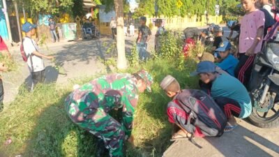 Kepedulian Terhadap Kebersihan Lingkungan, Danposramil Pattallasang Bersama Pelajar dan Masyarakat Laksanakan Karya Bakti