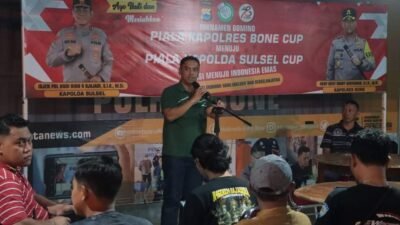 Bone – Turnamen Domino Piala Kapolres Bone Cup menuju Piala Kapolda Cup berlangsung dengan sangat meriah pada Sabtu malam, 22 Juni 2024, di aula terbuka Mapolres Bone. Acara ini diselenggarakan dalam rangka memperingati Hari Bhayangkara Ke-78 dan diikuti oleh ratusan peserta yang terdiri dari personel Polri dari polres dan polsek jajaran, serta Brimob Yon C Pelopor Polda Sulsel.