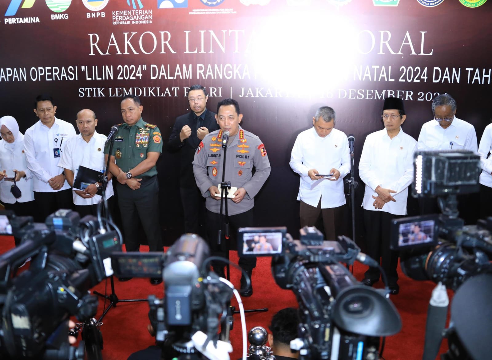 Hal tersebut disampaikan Jenderal Sigit usai Rakor Bidang Operasional 2024 dalam rangka Kesiapan Pengamanan Natal 2024 & Tahun Baru 2025 di Auditorium STIK/PTIK sebagai tindaklanjut arahan Presiden RI Prabowo Subianto untuk melaksanakan PAM Natal dan Tahun Baru dengan baik.