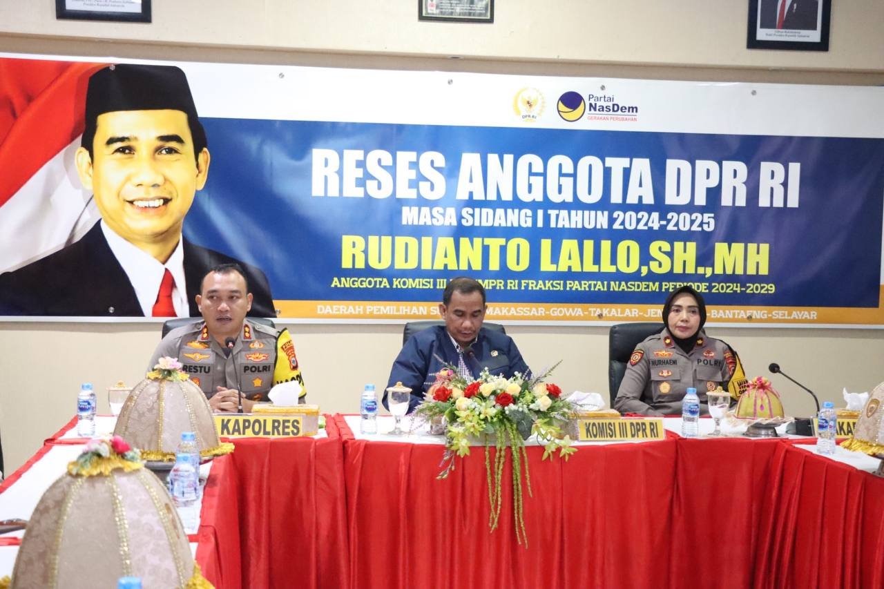 HUMDER — Polres Pelabuhan Makassar menerima kunjungan kerja reses Anggota Komisi III DPR RI, Bapak Rudianto Lallo. Kunjungan ini disambut dengan antusias oleh Kapolres Pelabuhan AKBP Restu Wijayanto yang didampingi Wakapolres Kompol Nurhaeni serta para Bhabinkamtibmas.