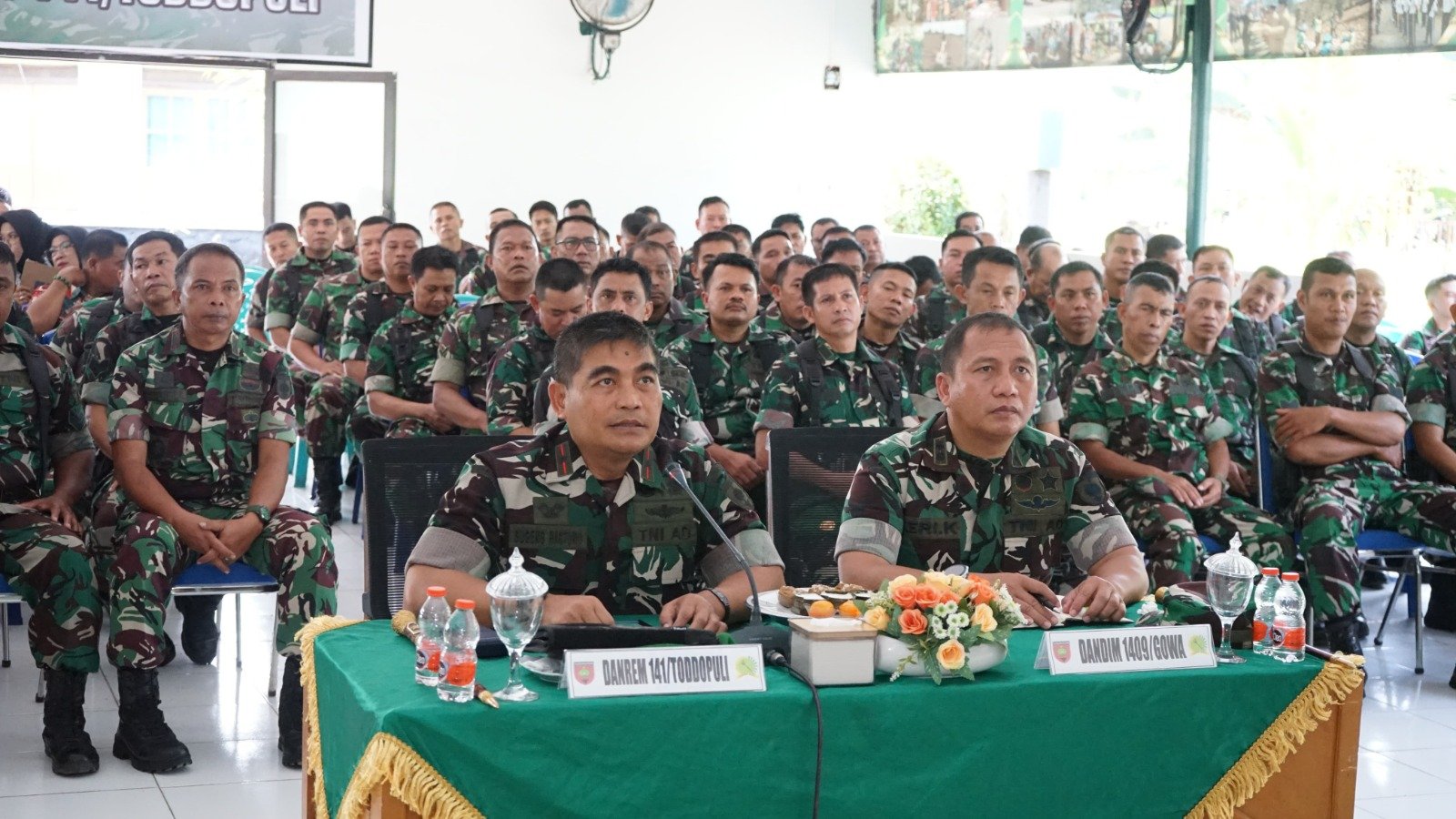 Setelah kegiatan pengarahan Pangdam XIV/Hasanuddin, Danrem 141/Tp Lanjut berikan pengarahan kepada personil jajaran Korem 141/Toddopuli melalui video conference (vicon) di Aula Makodim 1409/Gowa Jl. Sultan Hasanuddin Kel Pandang-pandang Kec. Somba Opu Kab. Gowa, Jumat (27/12/2024)