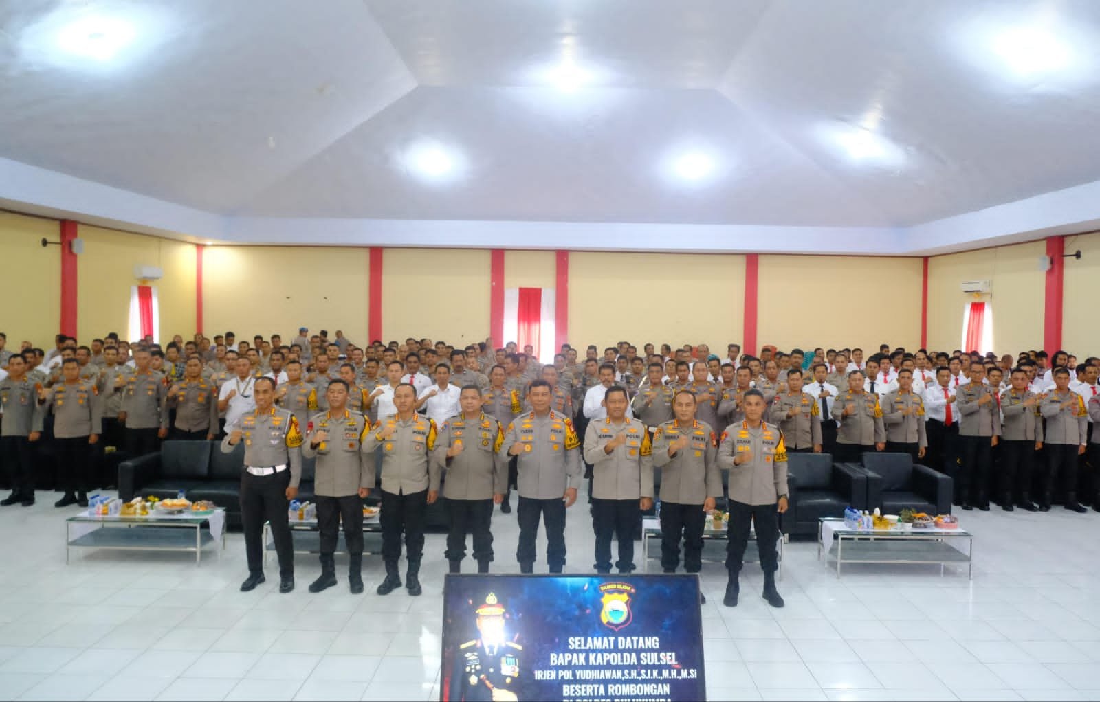 Turut hadir sejumlah Pejabat Utama Polda Sulsel mendampingi Kapolda, Irwasda Polda Sulsel, Dirlantas Polda Sulsel, Dansat Brimob Polda Sulsel, Dirsamapta Polda Sulsel, Kabid Propam Polda Sulsel, dan Kaspn Polda Sulsel.