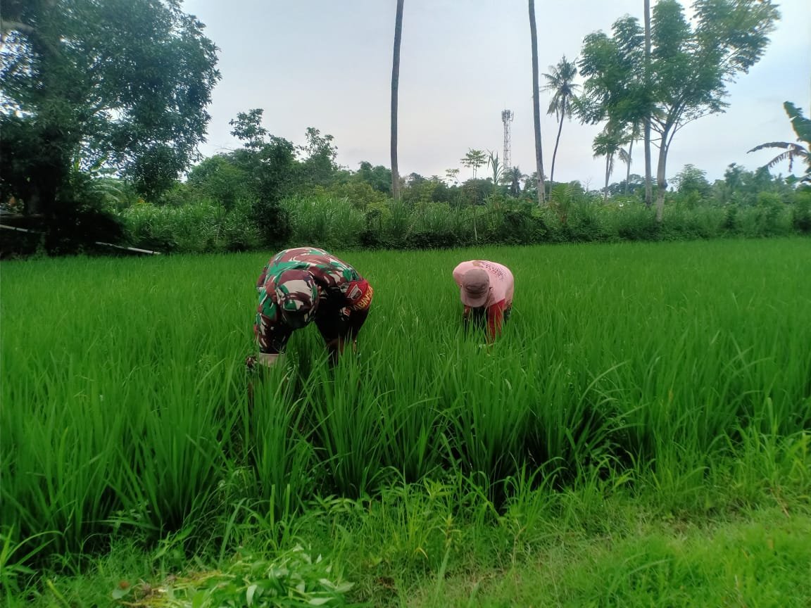 “kegiatan ini dilaksanakan Babinsa sebagai upaya khusus sebagai tindakan penyelamatan tanaman dari kerusakan tanaman padi oleh gangguan gulma, disamping itu pembersihan gulma terus dilakukan Babinsa dan petani hingga usia padi mencapai 30 hari, dengan harapan agar tanaman padi tumbuh dengan sehat.