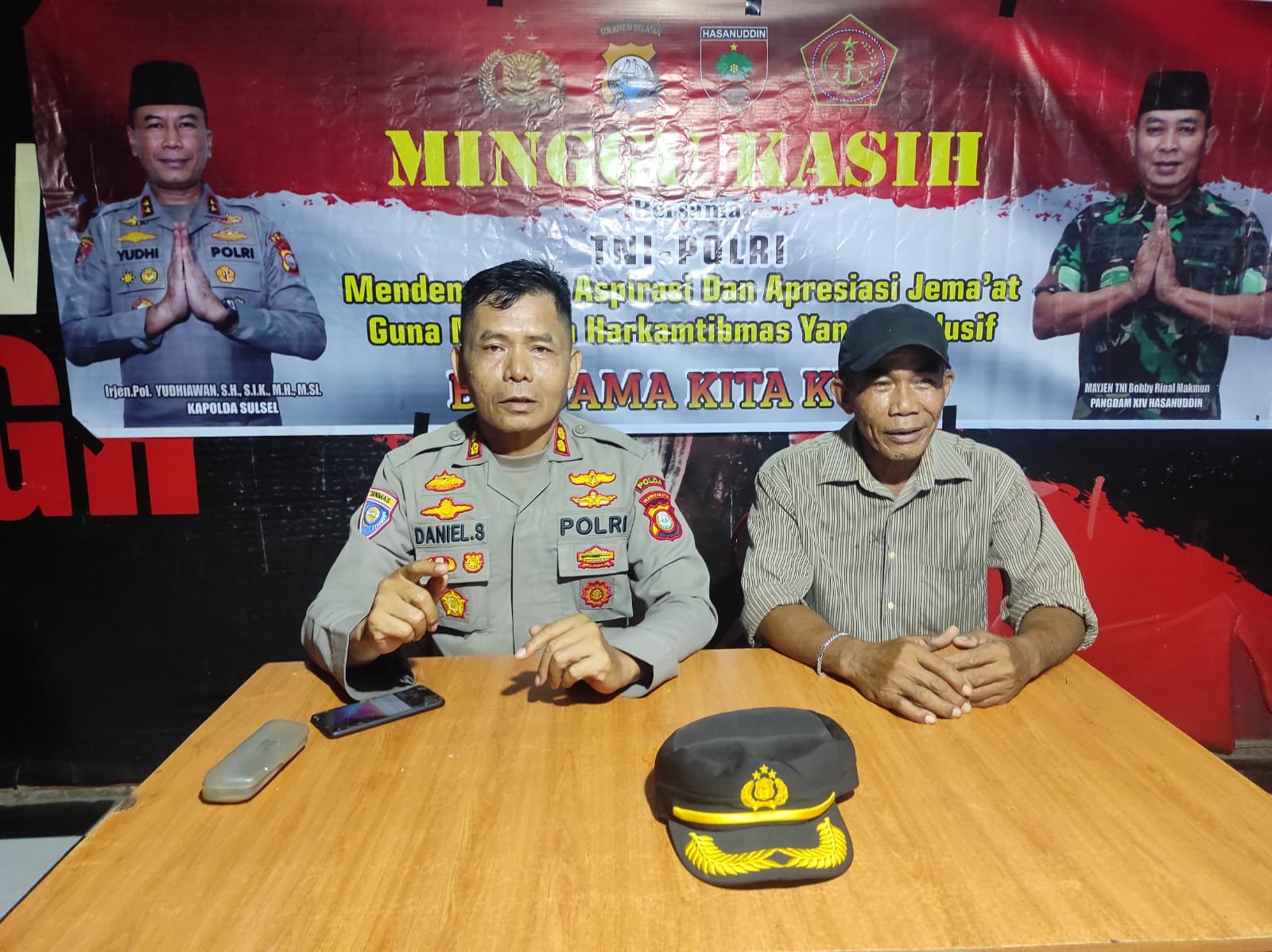 Tim minggu kasih yang dipimpin oleh Kasubdit Polmas Ditibinmas Polda Sulsel AKBP DANIEL SIAMPA, S.H.,M.H Mengatakan kegiatan ini merupakan inovasi dari Kapolri yang dilaksanakan oleh seluruh jajaran, jadi warga yang memang ada keluhan dan masukan boleh langsung diutarakan dan di sampaikan di kegiatan ini, โ jadi kalau ada masalahta mau curhat dan melapor apapun itu, bisa di kegiatan ini bapak ibu, insyallah sedapat mungkin kami tampung dan tindak lanjuti ,โ pungkasnya.
