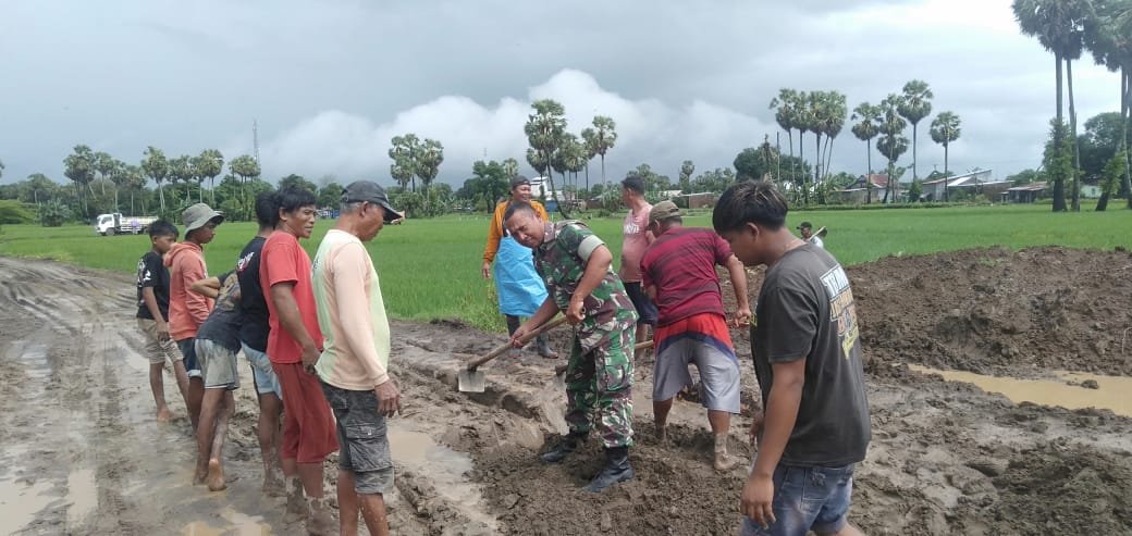 Antusiasme warga setempat yang secara gotong-royong memperbaiki infrastruktur jalan yang sempat mengalami kerusakan akibat cuaca buruk dan penggunaan yang intensif. Serka Sakri mengungkapkan bahwa pembenahan jalan tani sangat penting untuk mendukung mobilitas masyarakat, khususnya petani yang bergantung pada jalur ini untuk mengangkut hasil pertanian.