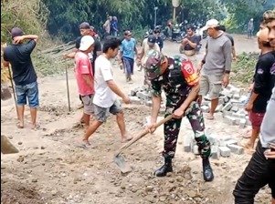 Sebagai seorang Babinsa harus mampu menjadi penggerak dan menjadi teladan bagi masyarakat dalam melaksanakan gotong royong di setiap kegiatan di wilayah. Dalam hal ini Serda Sampara bersama warga melakukan Perbaikan Jalan berupa pemasangan peping dan pengecoran jalan Aspal yang Rusak cukup parah, karena akses jalan tersebut sangat penting dan memudahkan pengguna jalan di desa tersebut.