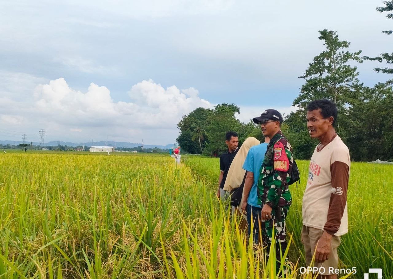 Babinsa Koramil 03/Bontomarannu Bersama PPL Pantau Perkembangan Padi