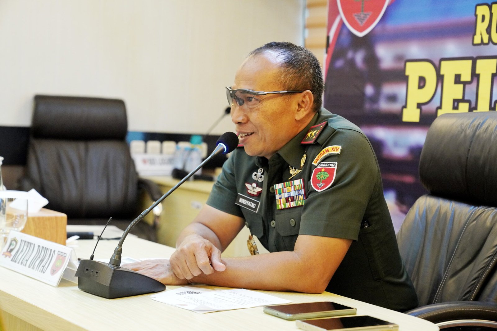 Makassar – Pangdam XIV/Hasanuddin Mayjen TNI Windiyatno, selaku Ketua Dewan Pengawas, memimpin rapat Dewan Pengawas Badan Layanan Umum (BLU) Rumah Sakit Tingkat II Pelamonia, yang berlangsung di Ruang Rapat RS. Pelamonia, Jl. Jend. Sudirman, Kota Makassar. Rabu, (26/02/2025).