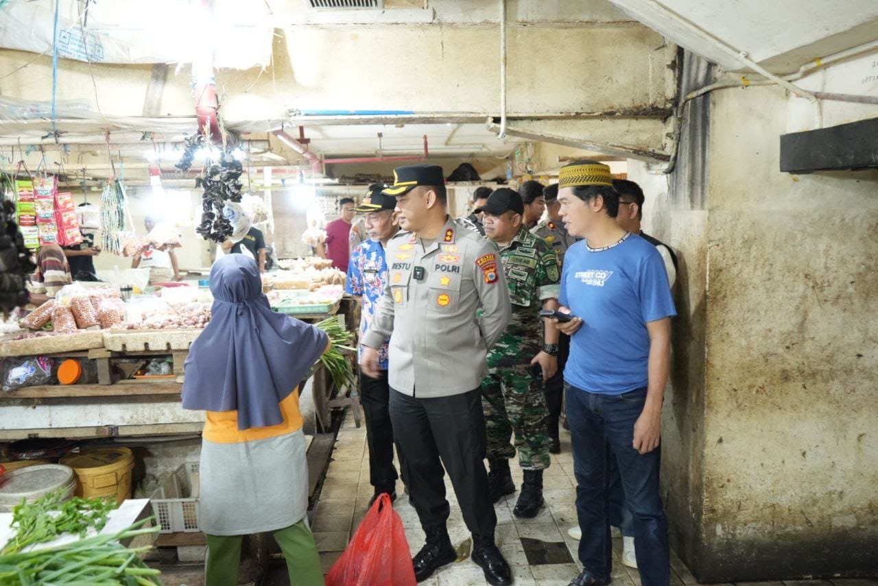 HUMDER — Menjelang bulan suci Ramadan 2025, Kapolres Pelabuhan Makassar AKBP Restu Wijayanto turun langsung ke Pasar Sentral Makassar untuk memastikan ketersediaan pangan dan stabilitas harga bahan pokok.