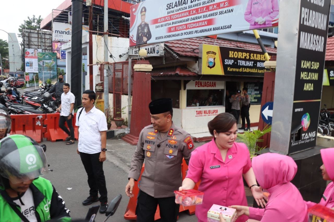 HUMDER — Di tengah kesibukan aktivitas Ramadan, Kapolres Pelabuhan Makassar AKBP Restu Wijayanto kembali turun ke jalan untuk berbagi kebaikan dengan membagikan takjil kepada pengendara roda dua dan roda empat. Kegiatan ini menjadi wujud nyata kepedulian antar sesama, khususnya bagi kaum Muslim yang tengah menjalankan ibadah puasa.