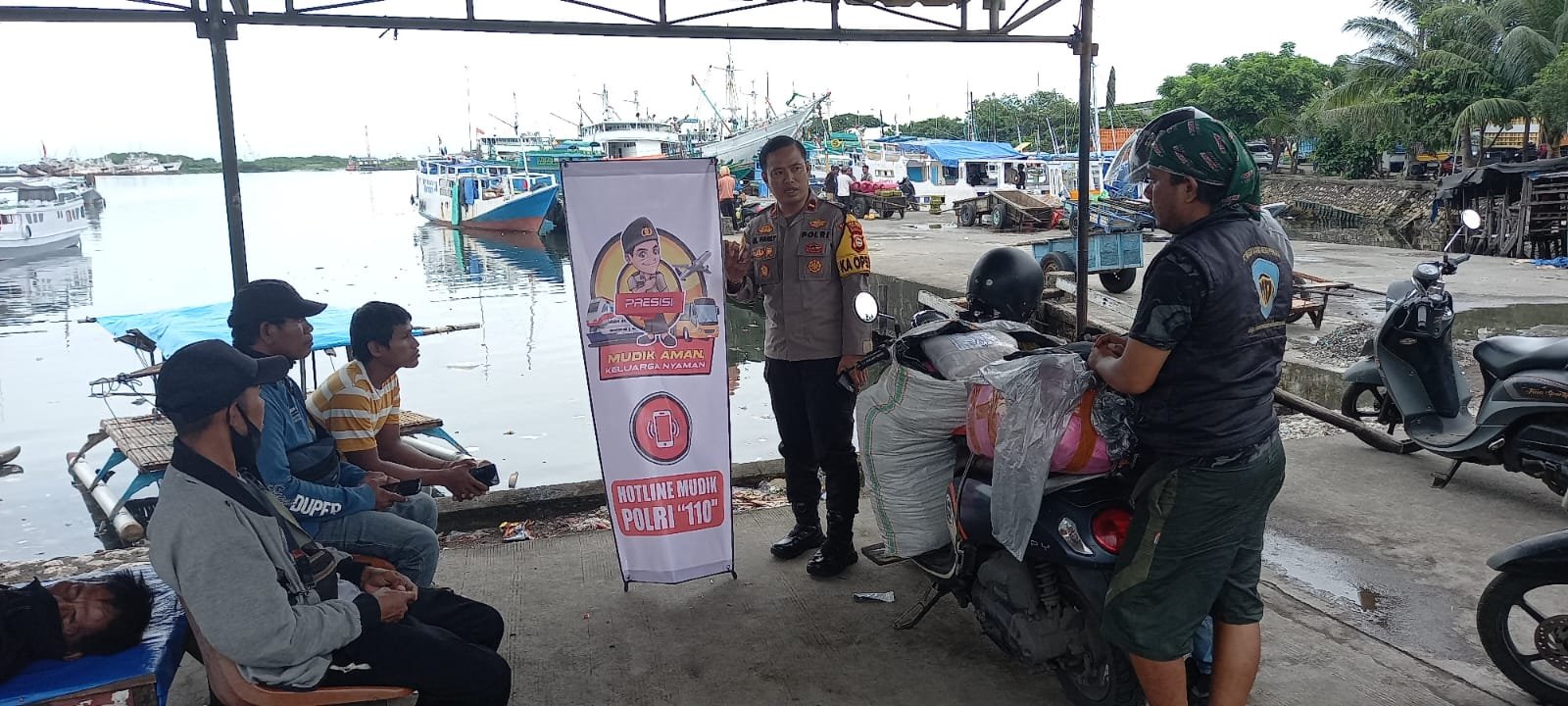 HUMDER — Menjelang arus mudik Lebaran, Kapolsek Paotere,Ipda Muhammad Farly, menggelar sosialisasi mengenai layanan Mudik Hotline Polri 110 di kawasan Pelabuhan Paotere, Makassar. Himbauan ini ditujukan kepada masyarakat yang beraktivitas di pelabuhan, terutama bagi para pemudik yang berasal dari wilayah kepulauan.