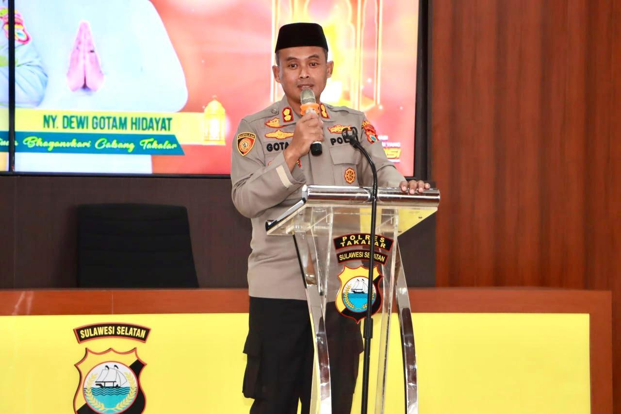 Kapolres Takalar, AKBP Gotam Hidayat, dalam sambutannya menyampaikan bahwa acara ini bertujuan untuk mempererat tali silaturahmi antara personel Polres Takalar, Bhayangkari, dan masyarakat, khususnya anak-anak panti asuhan.