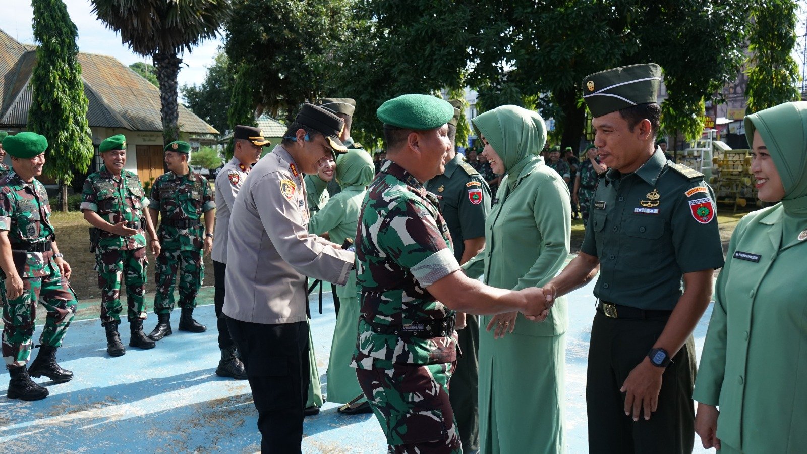 Gowa-Pelaksanaan acara kenaikan pangkat Personel Kodim 1409/Gowa dipimpin oleh Letkol Inf Heri Kuswanto, S.I.P. (Dandim 1409/Gowa) dihadiri oleh AKBP Reonald Truly Sohumuntal Simanjuntak, SIK., MH., MM., MI.K (Kapolres Gowa) dan para PJU Polres Gowa, di Lapangan Makodim 1409/Gowa Jl. Sultan Hasanuddin Kel. Pandang-pandang Kec. Sombaopu Kab. Gowa, Senin (07/04/25).