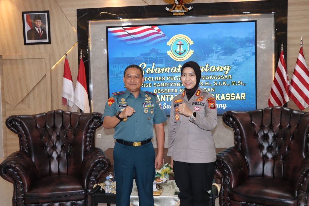 HUMDER — Semangat mempererat sinergi antara TNI dan Polri, Kapolres Pelabuhan Makassar AKBP Risa Sandiyantanti melakukan kunjungan silaturahmi sekaligus audensi ke Mako Lantamal VI Makassar, bertemu langsung dengan Danlantamal VI Brigjen TNI (Mar) Dr. Wahyudi.