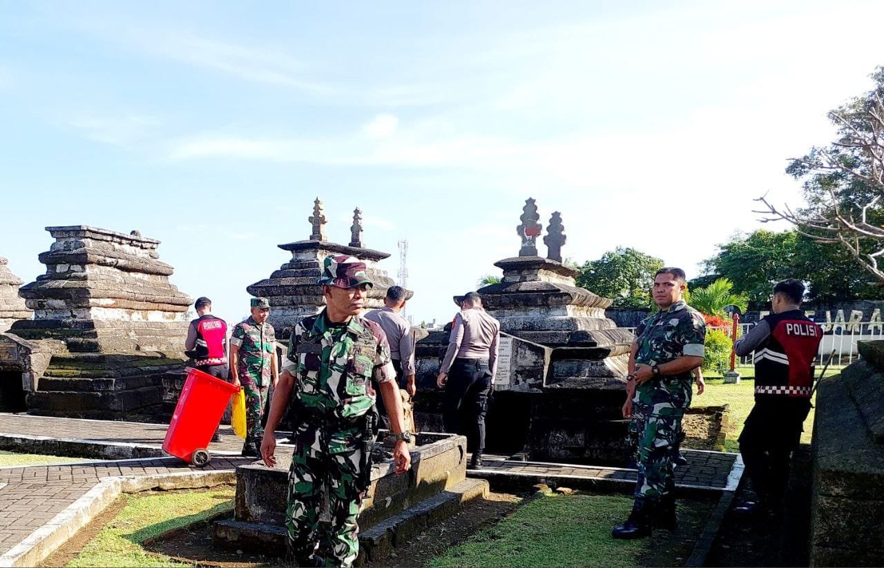 Gowa – Personil Kodim 1409/Gowa bersama Polres Gowa melaksanakan kerja bakti pembersihan Kompleks Makam Sultan Hasanuddin dan Kompleks Makam Karaeng Pattingalloang.