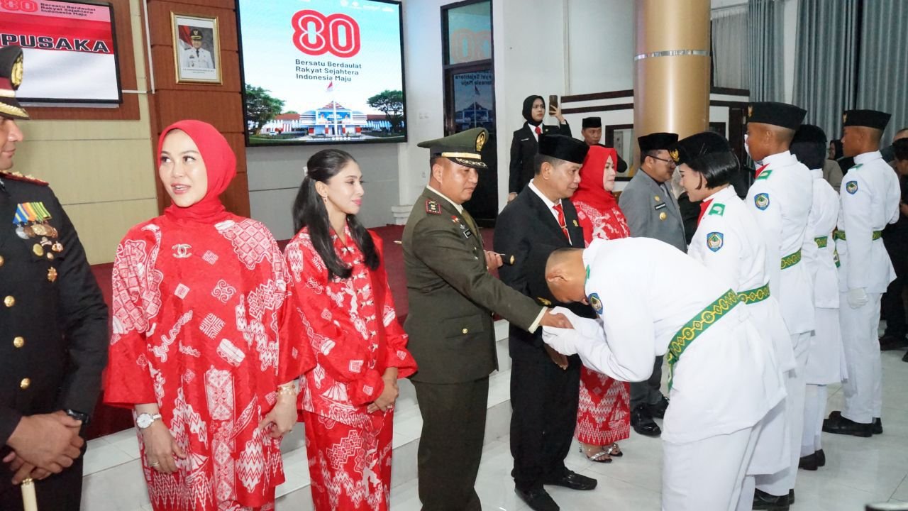 GOWA – Komandan Kodim (Dandim) 1409/Gowa, Letkol Inf Heri Kuswanto S.I.P., menghadiri upacara pengukuhan Pasukan Pengibar Bendera Pusaka (Paskibraka) tingkat Kabupaten Gowa tahun 2025. Acara yang berlangsung di Baruga Karaeng Galesong, Kantor Bupati Gowa, dipimpin langsung oleh Bupati Gowa, DR. Hj. Sitti Husniah Talenrang, S.E., M.M. Pada Jumat malam (15/8/2025).