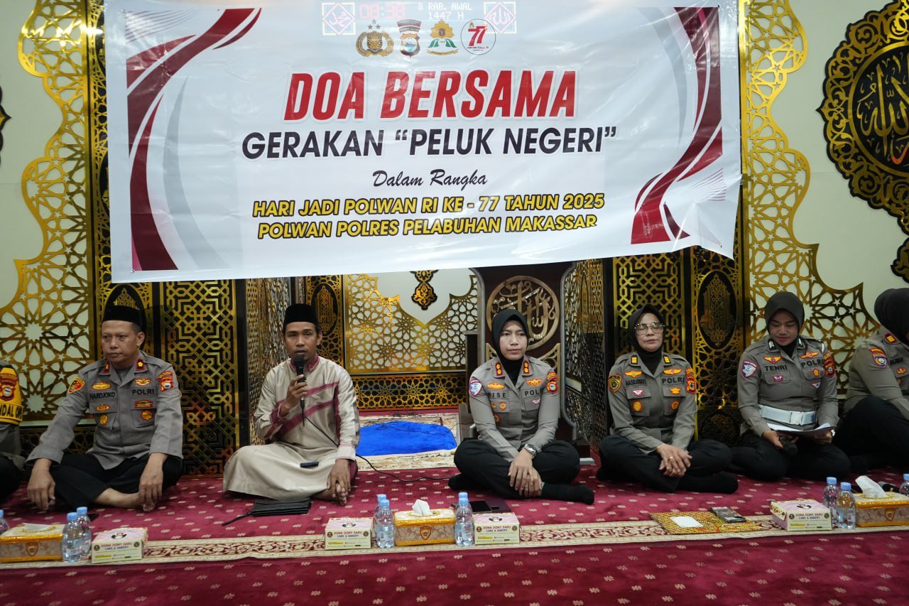 HUMDER — Suasana khidmat dan penuh kekeluargaan mewarnai kegiatan Doa Bersama dalam rangka Hari Jadi Polisi Wanita (Polwan) Republik Indonesia ke-77 yang digelar oleh Polres Pelabuhan Makassar. Kegiatan ini berlangsung pada Senin pagi, bertempat di Masjid Al-Muhajirin, Mapolres Pelabuhan Makassar.