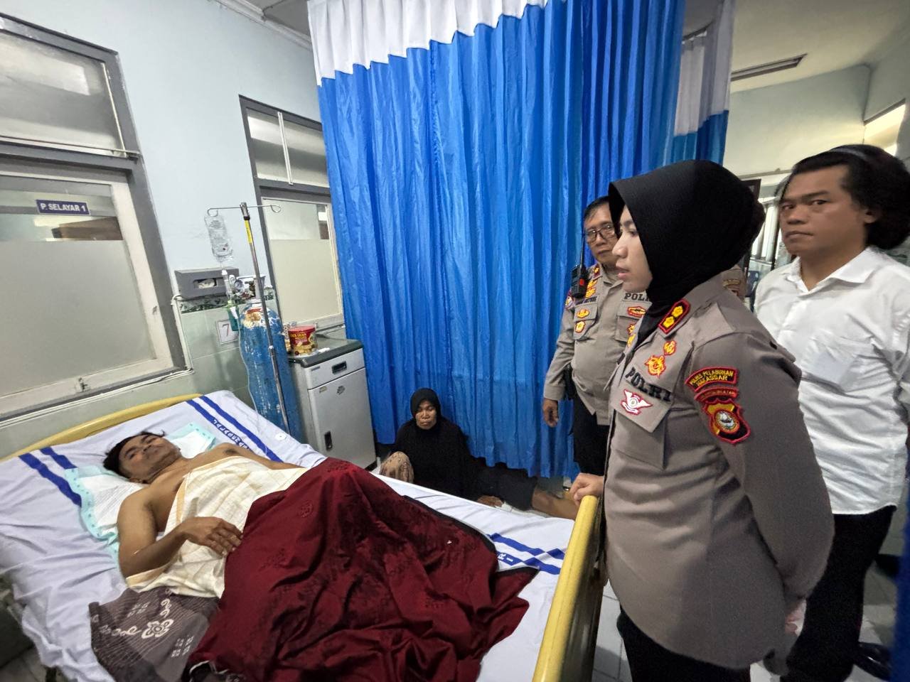 HUMDER — Sebagai wujud kepedulian Polri terhadap masyarakat, Kapolres Pelabuhan Makassar AKBP Rise Sandiyantanti menjenguk seorang warganya yang menjadi korban tindak kekerasan dengan senjata tajam jenis busur. Korban bernama Zahinuddin (32) saat ini tengah mendapatkan perawatan medis di Rumah Sakit Jala Amari Makassar.
