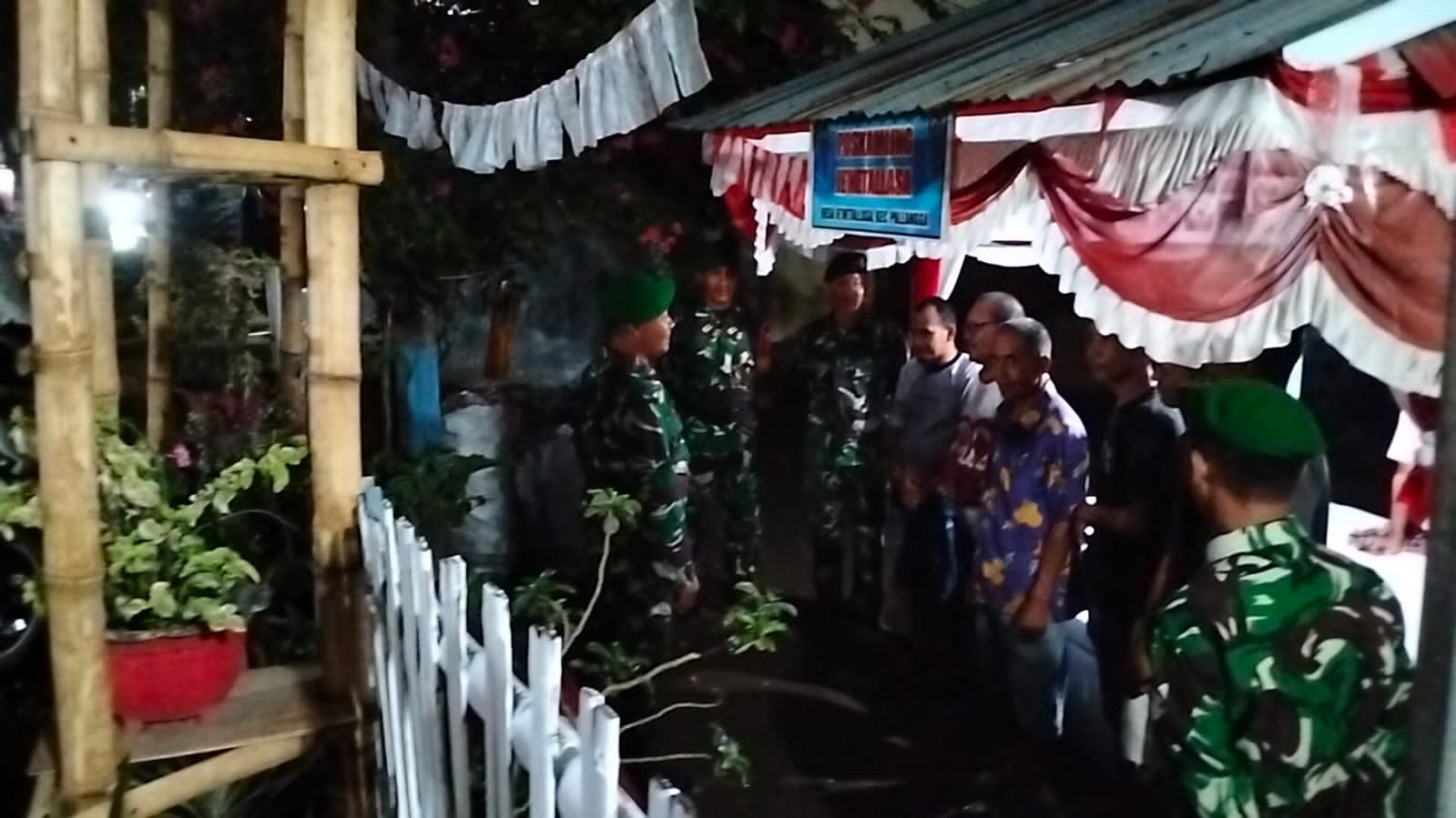 Tim yang terdiri dari 5 personil Koramil, 2 Elang Komado, 2 anggota FKPPI, dan 6 tokoh masyarakat melaksanakan patroli untuk menciptakan situasi aman dan kondusif.