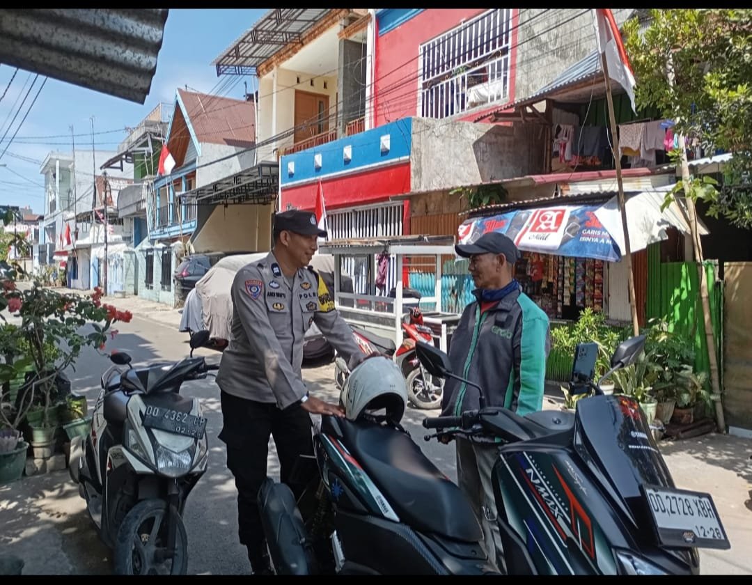 HUMDER — Upaya menjaga keamanan dan ketertiban masyarakat (Kamtibmas) terus digalakkan oleh jajaran Polres Pelabuhan Makassar. Salah satunya dilakukan oleh Bhabinkamtibmas Kelurahan Totaka Aiptu Wahyuddin yang rutin melakukan patroli dan sambang blusukan ke pemukiman warga.