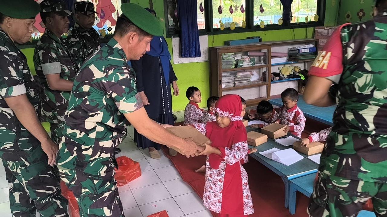 Danramil Letda Inf Arifin menyampaikan bahwa kegiatan ini merupakan wujud nyata kepedulian TNI terhadap peningkatan gizi dan kesehatan anak-anak usia dini.