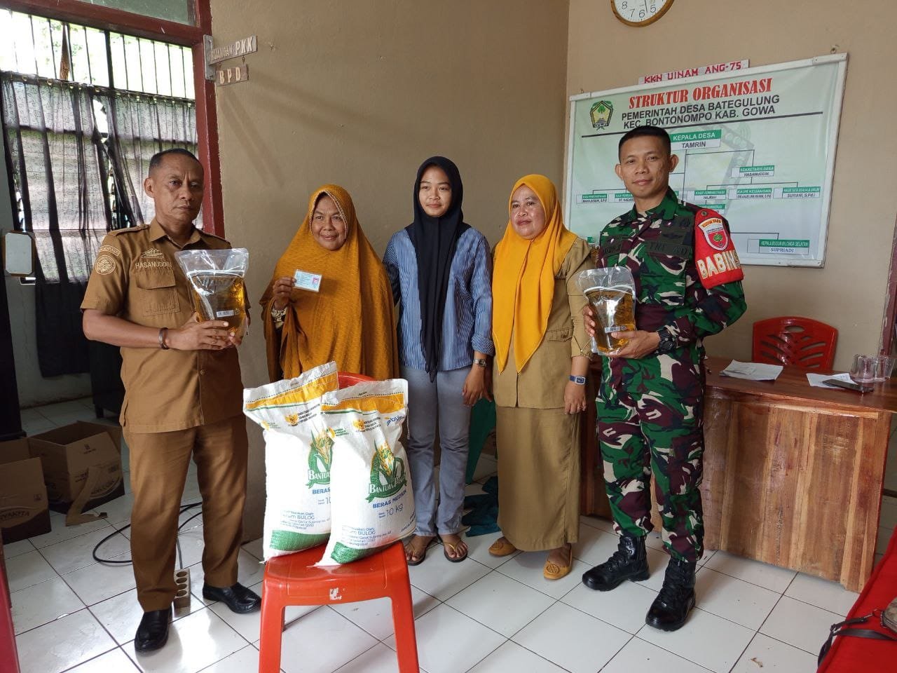 GOWA – Sebagai wujud nyata kepedulian TNI terhadap kesejahteraan masyarakat, Babinsa Desa Bategulung Koramil 1409-08/Bontonompo, Serda Chaeril Hasan, terjun langsung mengawal kegiatan penyaluran bantuan pangan pemerintah. Kegiatan ini dilaksanakan di Kantor Desa Bategulung, Kecamatan Bontonompo, Kabupaten Gowa, pada Selasa (16/12/2025).