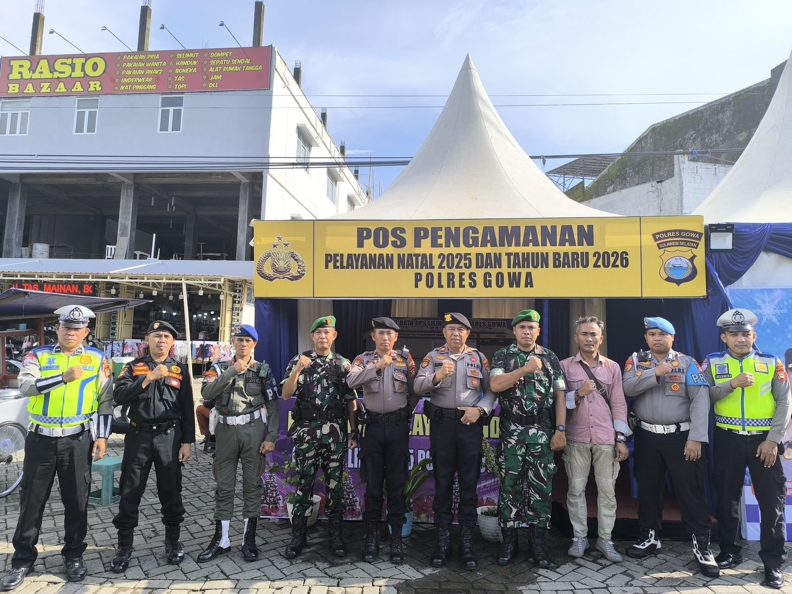 GOWA – Memasuki perayaan Natal 2025 dan menyambut Tahun Baru 2026, Kodim 1409/Gowa bersama Polres Gowa dan Satpol PP Kabupaten Gowa menggelar aksi pengamanan (PAM) gabungan secara intensif. Langkah ini diambil untuk memastikan seluruh rangkaian kegiatan ibadah dan perayaan masyarakat di wilayah Kabupaten Gowa berjalan dengan aman, damai, dan kondusif. Minggu (21/12/2025).