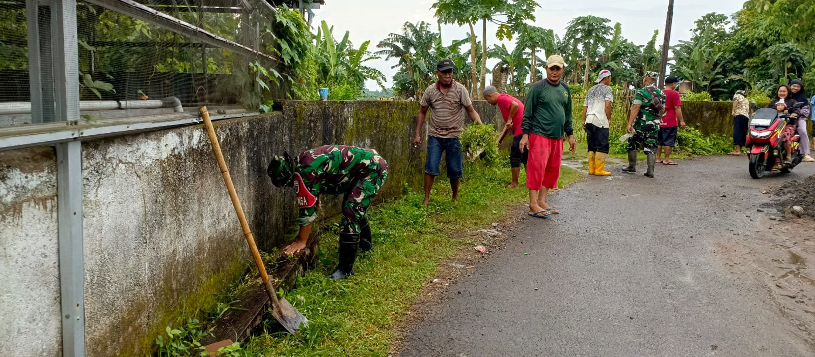 Dengan bahu-membahu, TNI dan masyarakat Desa Bone bergerak cepat mengeduk tanah dan mengangkat sampah agar aliran air kembali lancar, sehingga infrastruktur desa tetap terjaga dan lingkungan menjadi lebih asri.