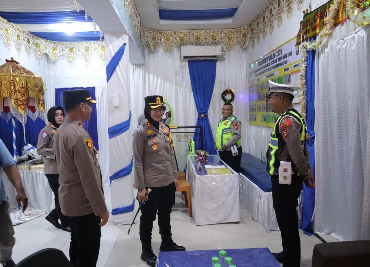 HUMDER — Menjelang perayaan malam pergantian Tahun Baru 2026, Kapolres Pelabuhan Makassar AKBP Rise Sandiyantanti turun langsung melakukan pengecekan kesiapan Pos Pengamanan (Pospam) dan Pos Pelayanan (Posyan) yang berada di wilayah hukum Polres Pelabuhan Makassar.