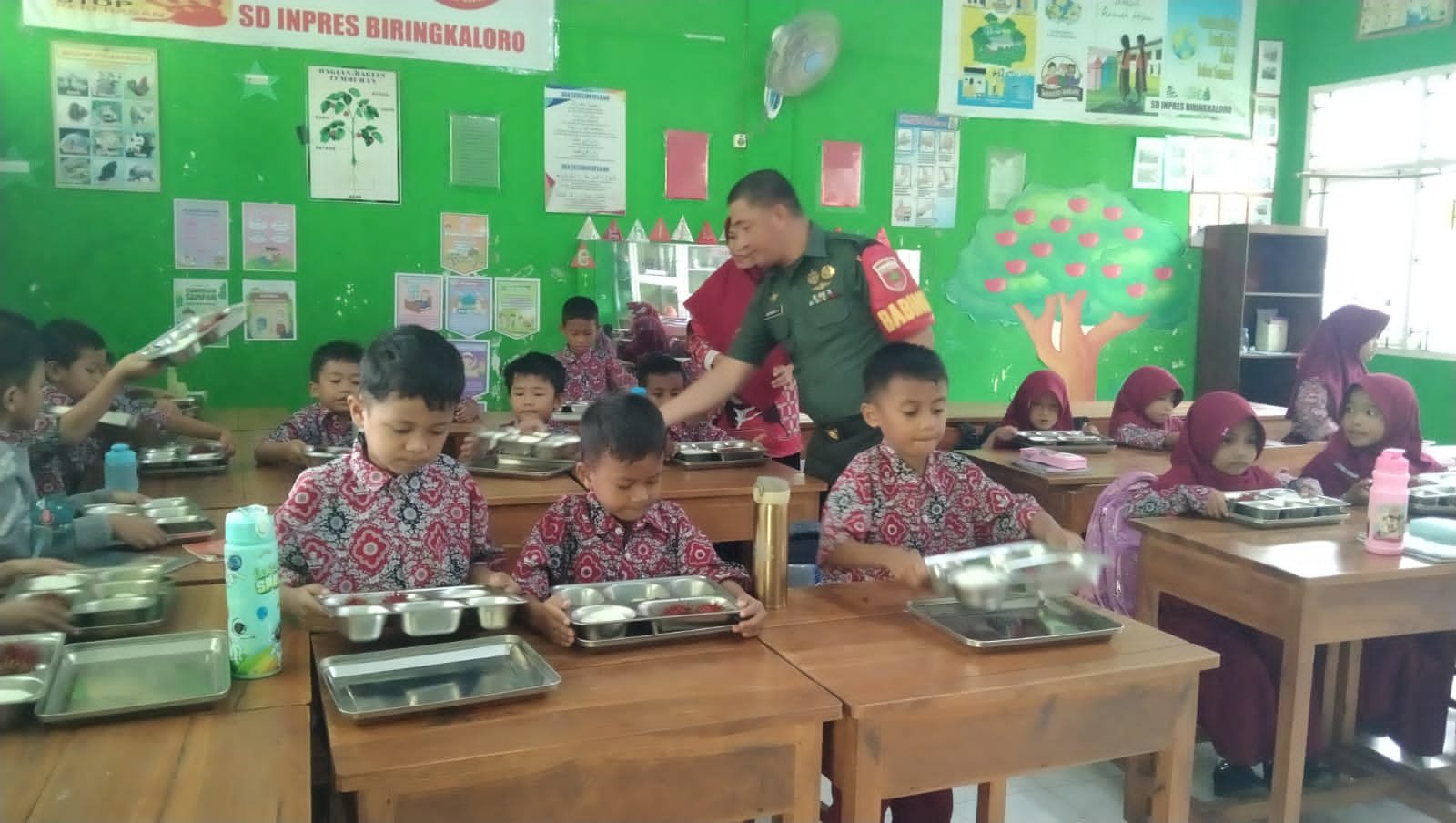 GOWA – Dalam rangka mendukung program nasional percepatan perbaikan gizi anak sekolah, Babinsa Kelurahan Tetebatu, Serka Herman J, melaksanakan pemantauan intensif terhadap realisasi penyaluran Makanan Bergizi Gratis (MBG) di SD Inpres Biringkaloro, Lingkungan Biringkaloro, Kecamatan Pallangga, Kabupaten Gowa, Kamis (22/1/2026).