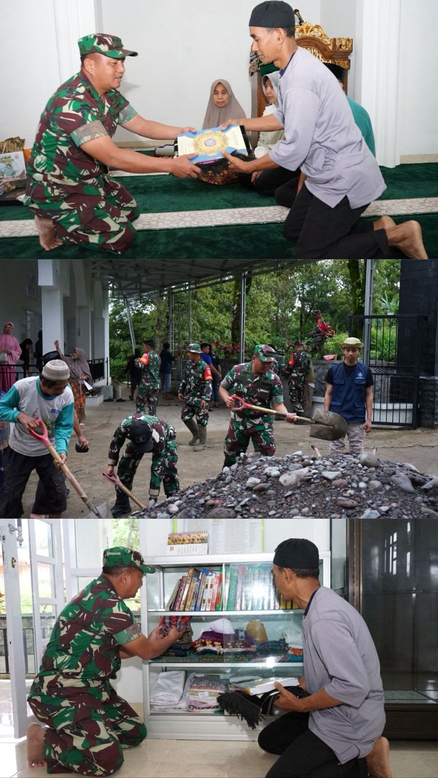 Dandim 1409/Gowa, Letkol Inf Heri Kuswanto, S.I.P., memimpin langsung personelnya di dampingi Danramil 04/Tinggimoncong Kapten Inf Agus Sala, Pasi Ter Lettu Cba Jumaseng, Babinsa hingga Persit, bahu-membahu bersama warga setempat dalam melakukan pembersihan dan pembenahan area masjid.