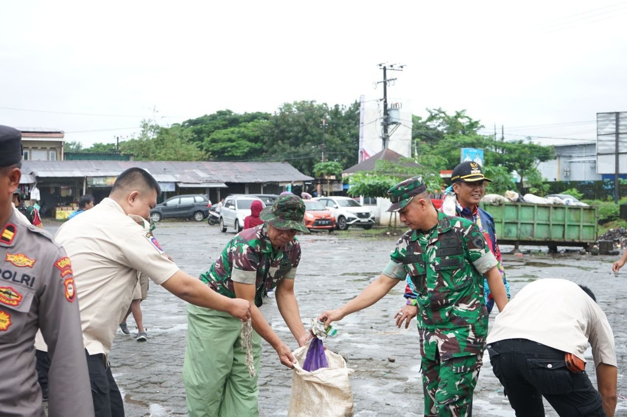 Aksi bersih-bersih ini menyasar tumpukan sampah liar dan area saluran air guna menciptakan suasana pasar yang bersih serta mencegah terjadinya genangan air di jalur protokol.