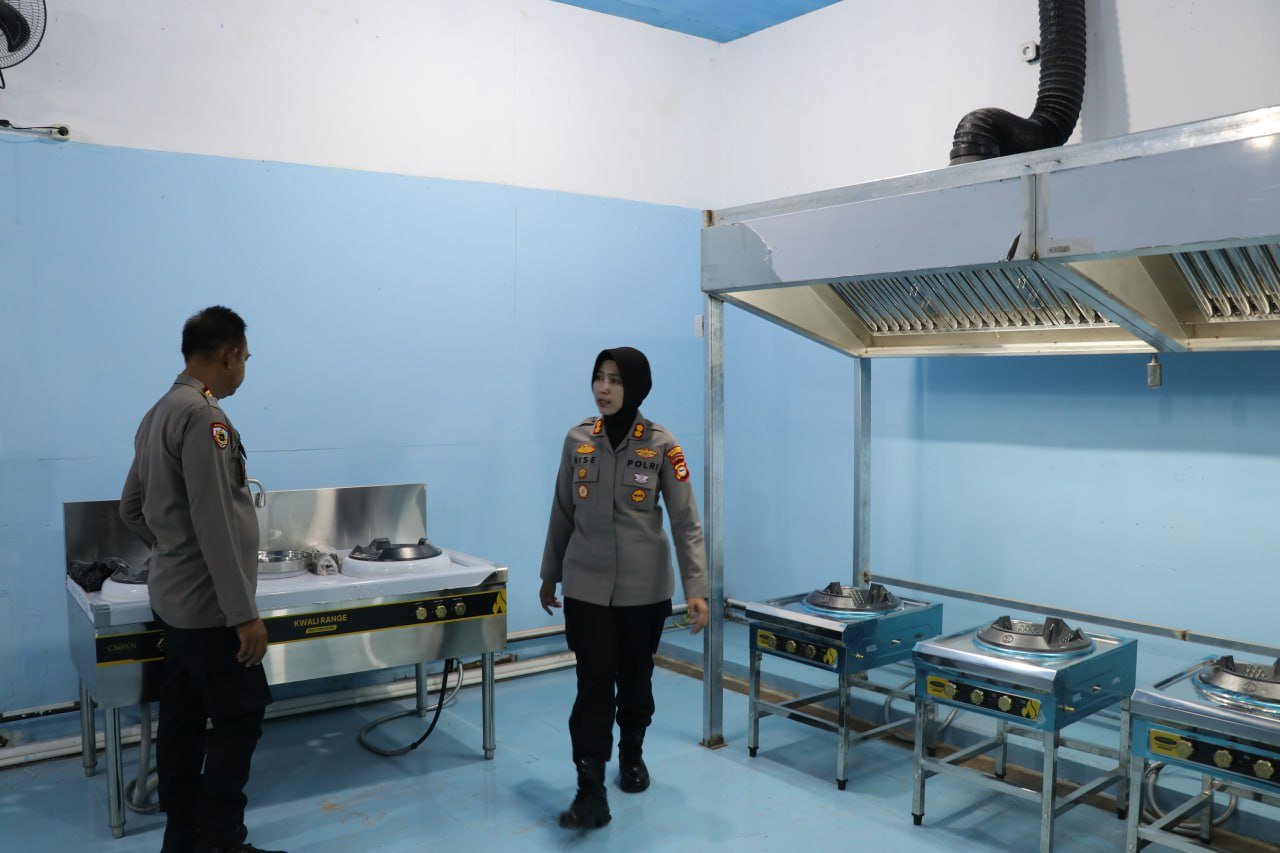 HUMDER — Kapolres Pelabuhan Makassar AKBP Rise Sandiyantanti meninjau langsung progres finishing pembangunan Satuan Pelayanan Pemenuhan Gizi (SPPG) sebagai bentuk komitmen Polri dalam mendukung visi dan misi Pemerintah melalui program Makan Bergizi Gratis (MBG).
