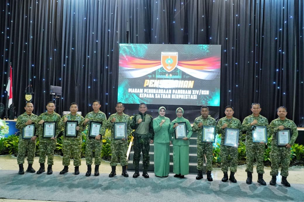Pada kesempatan tersebut, Pangdam menyerahkan secara simbolis kendaraan dinas Maung, alat kesehatan, serta piagam penghargaan kepada sejumlah satuan berprestasi, di antaranya Rindam XIV/Hsn dan Komlekdam XIV/Hsn predikat Menuju WBK TA 2025, Rumkit TK II Pelamonia peringkat II laporan keuangan tingkat TNI AD, serta beberapa Kodim yang meraih prestasi Binter, TMMD, Kampung Pancasila dan dukungan pembentukan satuan baru. Pangdam juga menekankan pentingnya membangun organisasi yang sehat, penuh empati, kasih sayang dan kebersamaan demi menghadirkan rasa aman dan semangat bagi seluruh prajurit dan keluarga besar Kodam XIV/Hsn.