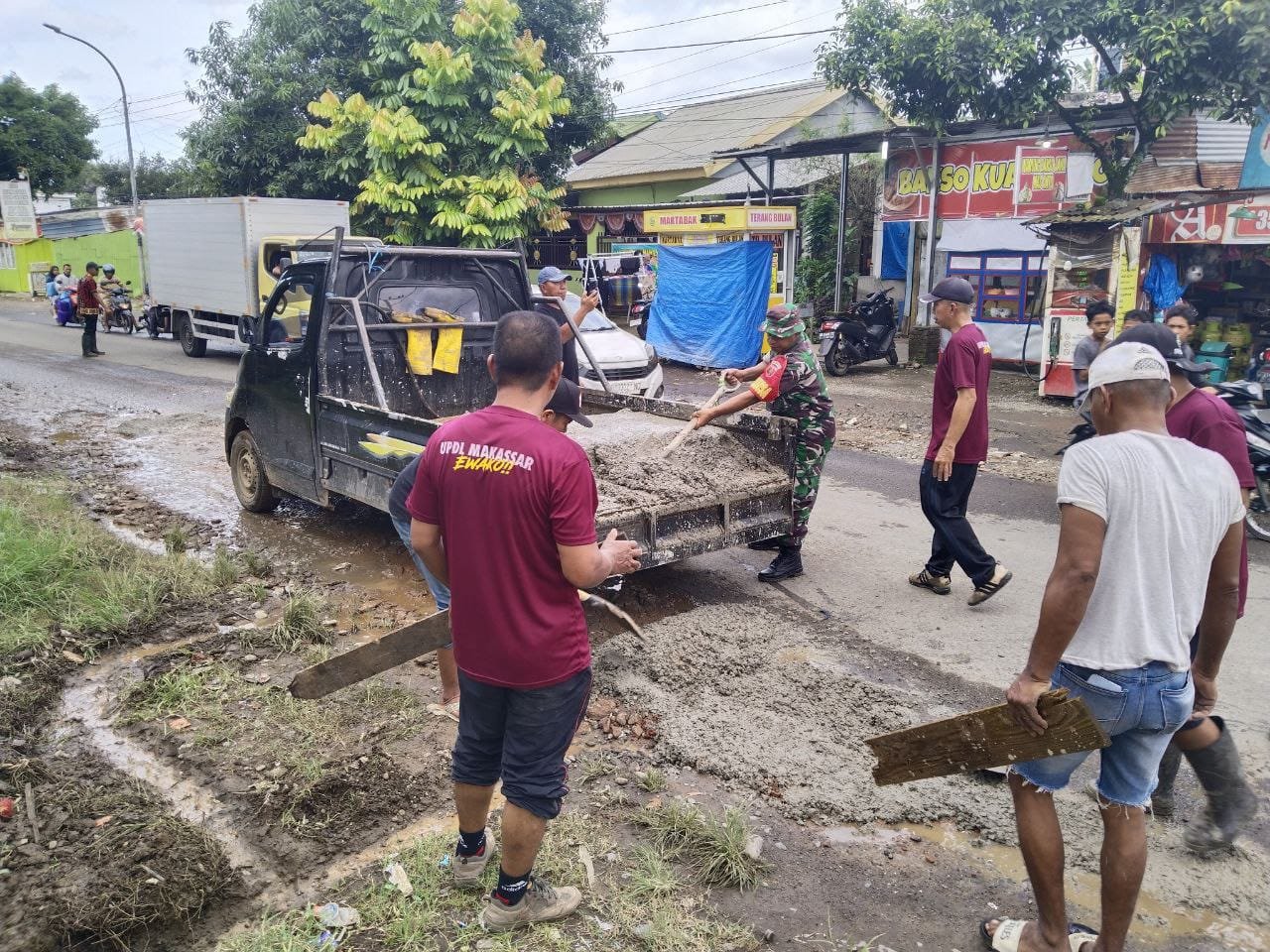 “Kegiatan ini adalah wujud nyata kemanunggalan TNI dengan rakyat dan instansi terkait. Kami melihat banyak lubang kecil yang membahayakan, maka secara swadaya kami lakukan penambalan sementara agar masyarakat aman saat melintas,” ujar Serka Rahmat di lokasi kegiatan.