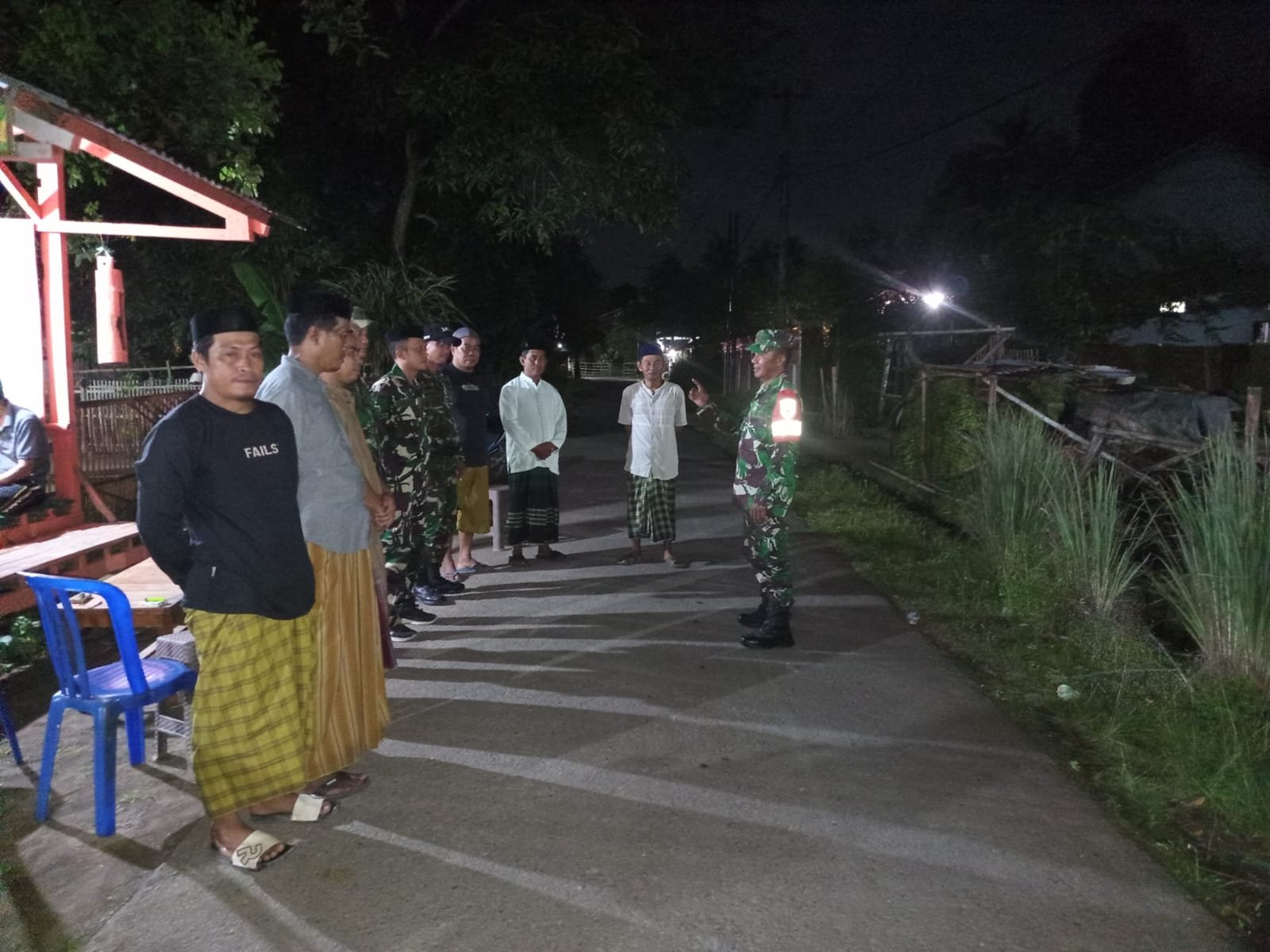 Gowa โ Dalam upaya menciptakan kondisi wilayah yang aman dan kondusif, personel Koramil 1409-06/Bajeng bersama Komponen Pendukung (Komduk) menggelar patroli gabungan di Desa Mandalle, Kecamatan Bajeng Barat, Kabupaten Gowa. Senin malam (02/03/2026).