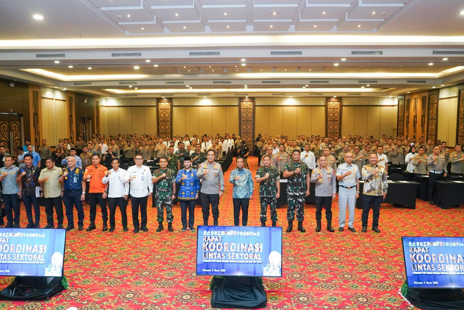 Makassar – Pangdam XIV/Hasanuddin Mayjen TNI Bangun Nawoko menghadiri Rapat Koordinasi (Rakor) Lintas Sektoral dalam rangka Kesiapan Operasi Kepolisian Terpusat Ketupat – 2026 Pengamanan Hari Raya Idul Fitri 1447 H, bertempat di Hotel Harper, Jl. Perintis Kemerdekaan, Kota Makassar. Kamis, (5/3/2026).