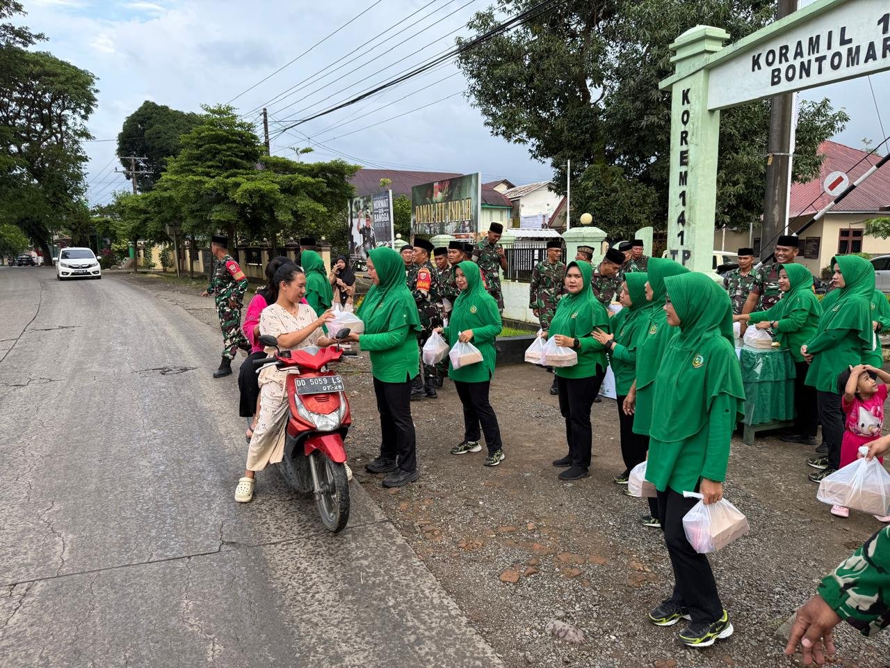 Kegiatan tersebut Dipimpin langsung oleh Danramil Lettu Inf Iqbal Basar, S.I.P, aksi ini juga melibatkan Ketua Ranting 04 Bontomarannu, seluruh personel Koramil, serta ibu-ibu Persit Kartika Chandra Kirana Ranting 04. Personel dan ibu-ibu Persit dengan ramah menyapa para pengendara motor maupun mobil yang melintas di Jln. Poros Malino untuk memberikan paket takjil. Selain itu, paket sembako juga diserahkan kepada sejumlah warga yang membutuhkan sebagai upaya membantu ketahanan pangan keluarga di bulan Ramadhan.