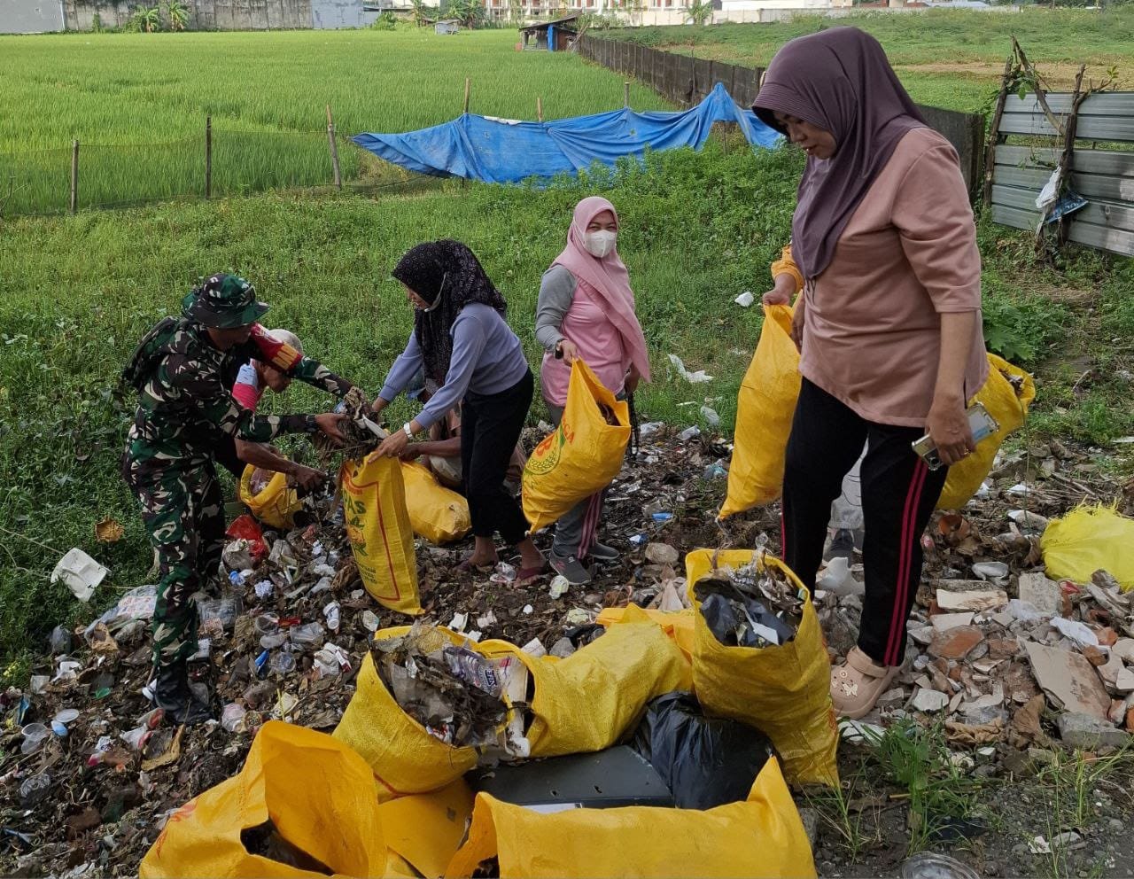 Aksi gotong royong ini menyasar pembersihan sampah plastik dan rumput liar yang menumpuk di pinggir jalan utama guna menjaga estetika dan kesehatan lingkungan. Kegiatan ini merupakan bentuk nyata sinergi antara TNI, pemerintah kelurahan, dan masyarakat setempat.