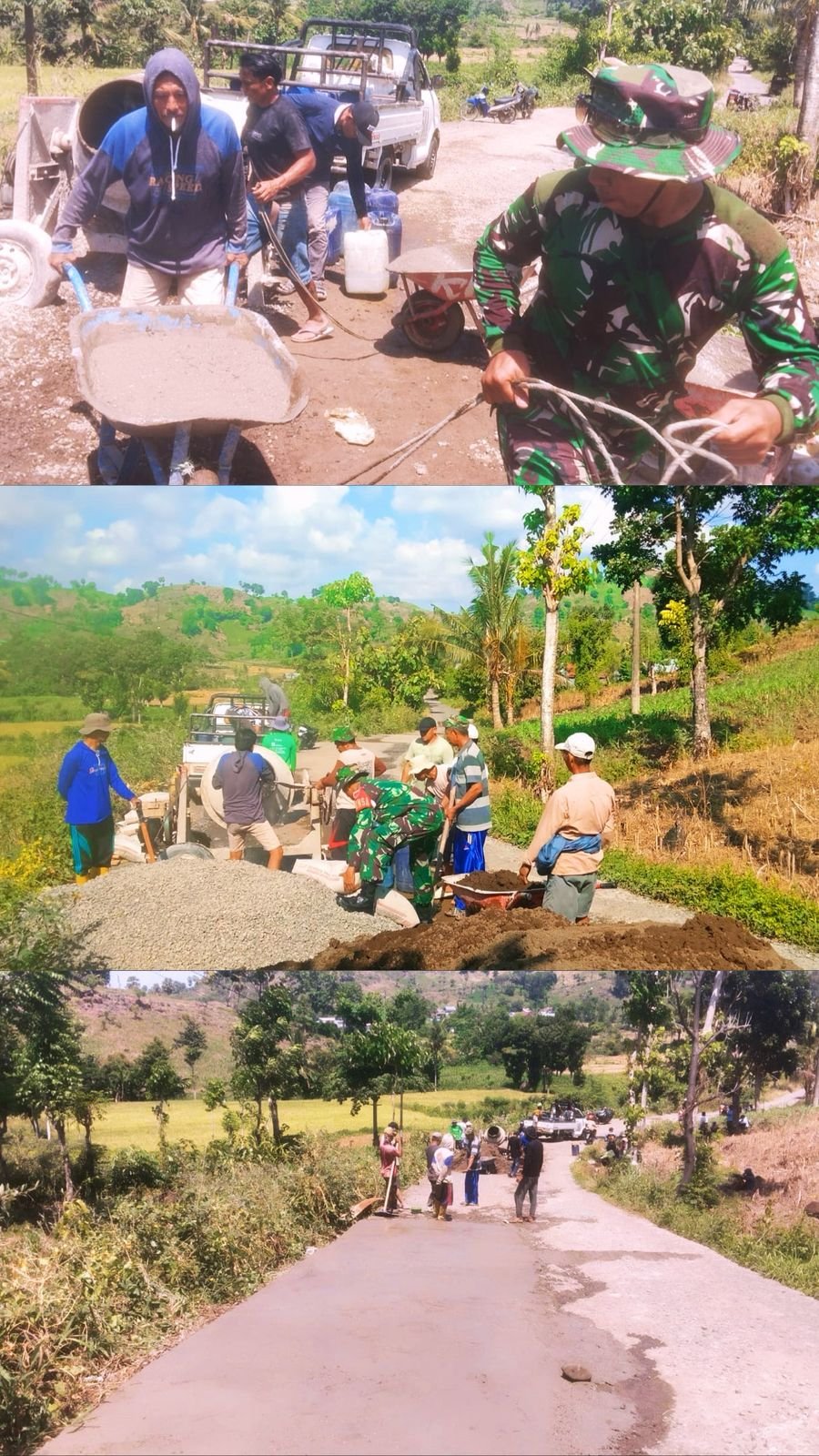 Kegiatan gotong royong ini fokus pada pengecoran jalan sepanjang 50 meter yang selama ini kondisinya rusak berat. Turut hadir dalam aksi tersebut Serda Alim Basri, tokoh masyarakat Syamsuddin dan Herman Sita, serta sedikitnya 25 warga setempat yang bekerja dengan penuh semangat.
