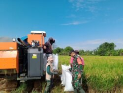 Wujudkan Swasembada Pangan, Babinsa Romanglasa Dampingi Petani Panen 40 Are Padi Inpari